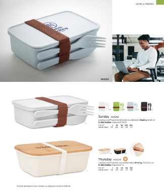 Lunchbox van PP kunststof met bestek en sluitelastiek. Afmeting 16x11x5 cm
