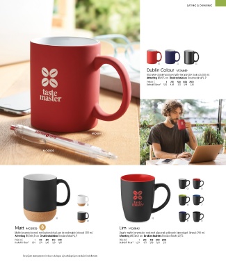 Matte keramische mok met kurken detail aan de onderzijde. Inhoud: 300 ml. Zwarte matte keramische mok met glanzend gekleurde binnenkant. Inhoud: 290 ml.