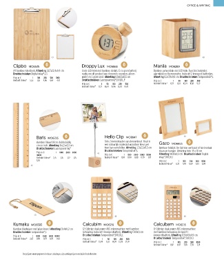 A4 bamboe klembord. Afmeting 32,7x22,4x0,4 cm Grote LCD-klok met bamboe details. Er is geen batterij Bamboe pennenbak met LCD klok. Functies: kalender,